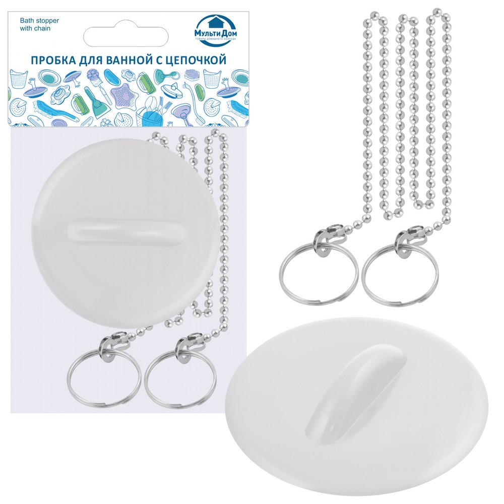 Пробка для ванной с цепочкой МультиДом Уайт для отверстия диаметром 45-50мм МГ34-5