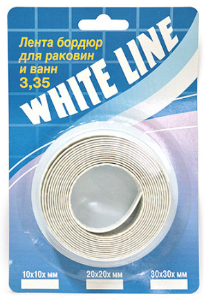 Лента бордюрная элемент отделки ванных комнат, санузлов, кухонь, подсобных помещений с повышенной влажностью. Предназначена для монтажа на стыках ванны, душевой кабинки или раковины и стены, либо на угловых соединениях стеновых поверхностей, облицованных керамической плиткой. Обеспечивает качественную герметизацию швов и стыков.