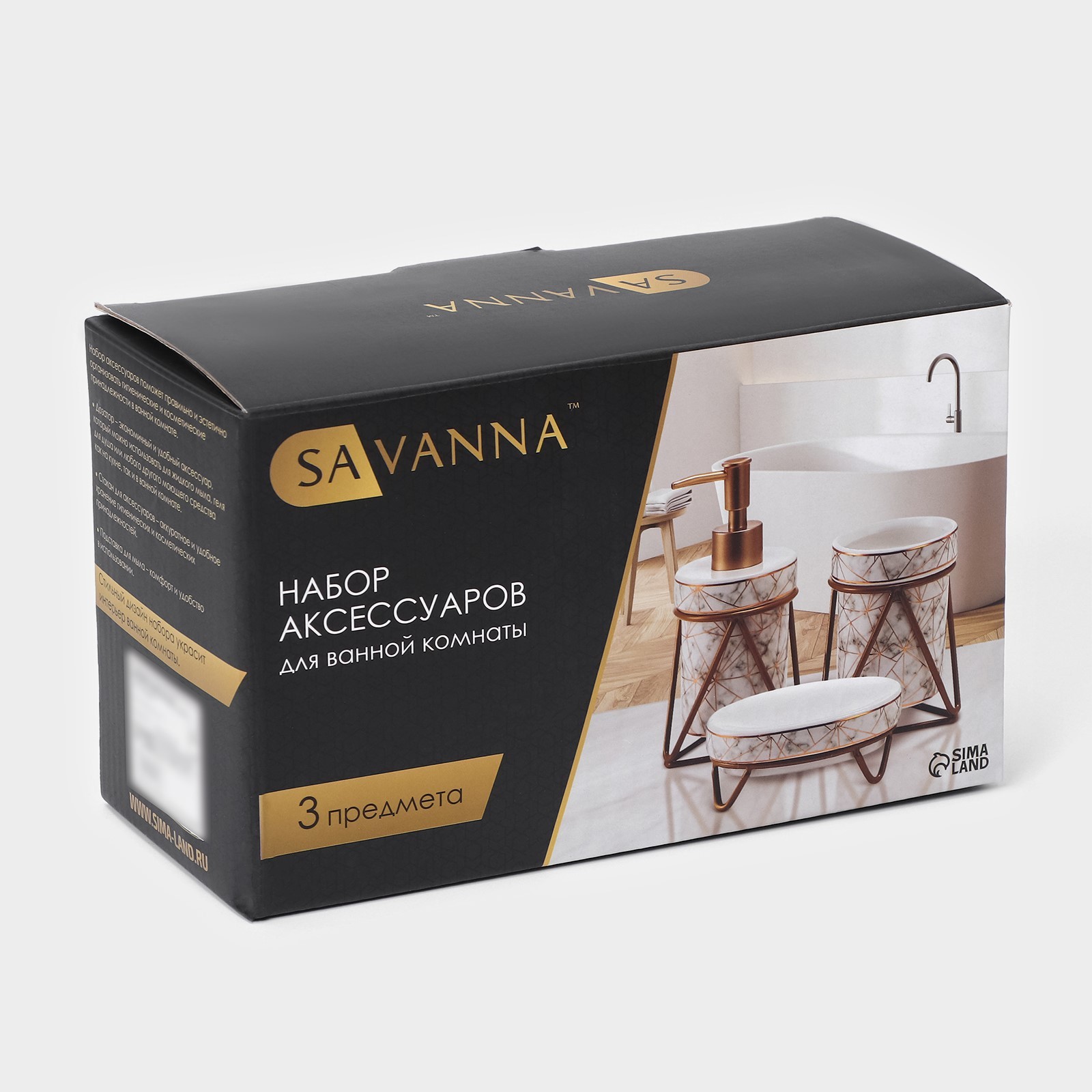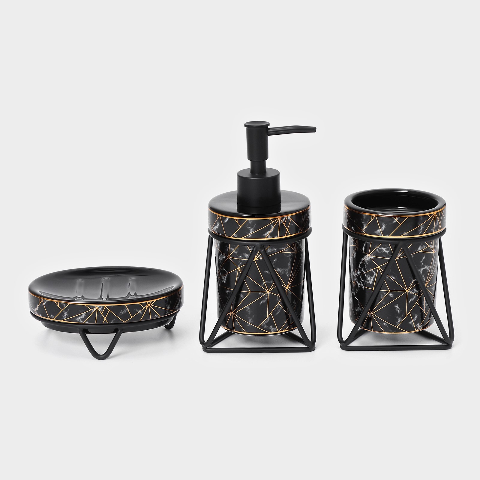 Набор аксессуаров для ванной комнаты SAVANNA Геометрика 3 предмета черный 5459646