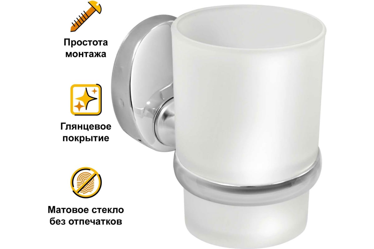 Стакан для зубных щеток "SOLINNE" с держателем стекло-сатин хром 16122 арт.2546.143