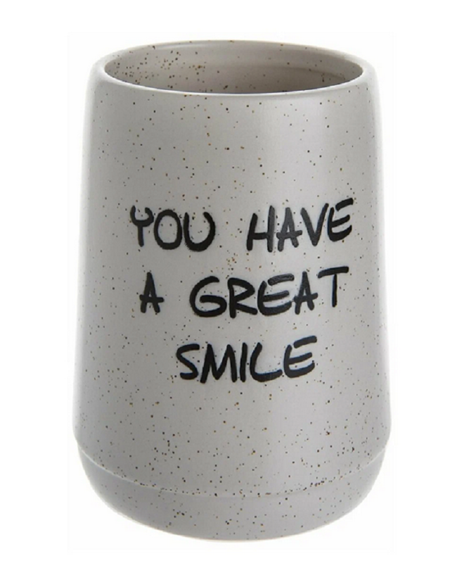 Стакан-подставка имеет цилиндрическую форму и стильную надпись, мотивирующие на хорошее настроение и продуктивный день. Комфортное использование и эстетика подставки под зубные щетки является основным преимуществом данного изделия.