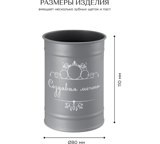Стакан для зубных щеток Fora Создавая мечты настольный, серый