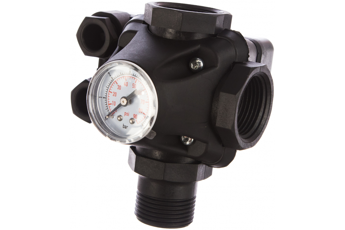 Реле давления со встроенным манометром PM/5-3W — оригинальное устройство, соединяющее реле давления РМ/5, пятивыводной штуцер и манометр. Устройство облегчает процесс монтажа автоматических насосных станций водоснабжения.