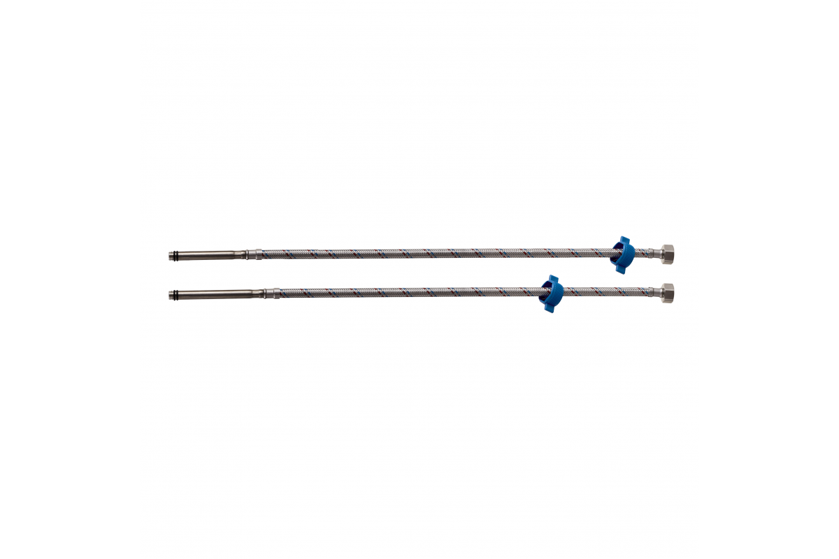 Подводка гибкая повышенной прочности гайка-штуцер (пара) с металлическими длинными штуцерами и затяжными пластиковыми хомутами, L=800 мм