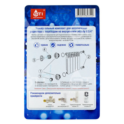 Комплект фитингов для радиаторов STI 1х3/4 без кронштейнов в блистере
