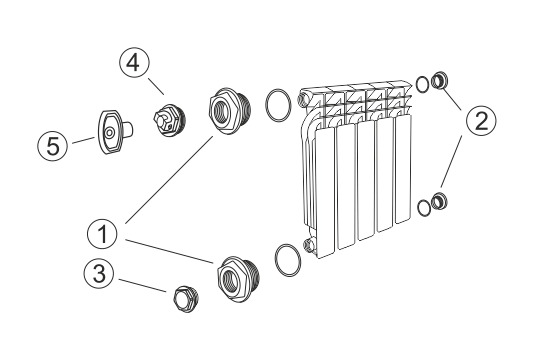 Монтажный комплект предназначен для подключения алюминиевых, биметаллических и чугунных радиаторов с присоединительным размером верхнего и нижнего коллекторов G1" (внутренняя резьба).