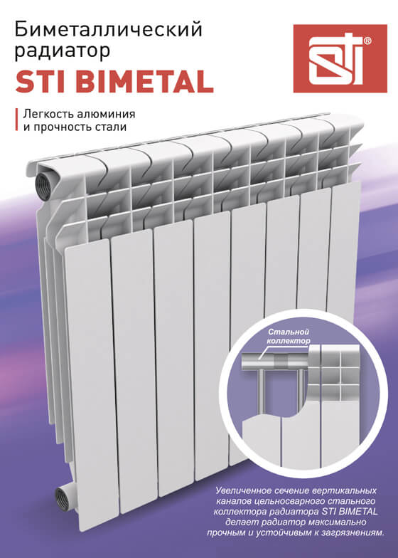 Радиатор BIMETAL STI биметаллическийI 500х80, 8 секций /508/