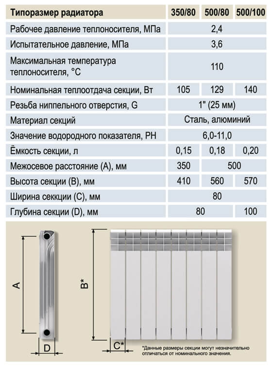 Теплоотдача одной секции, Вт 129