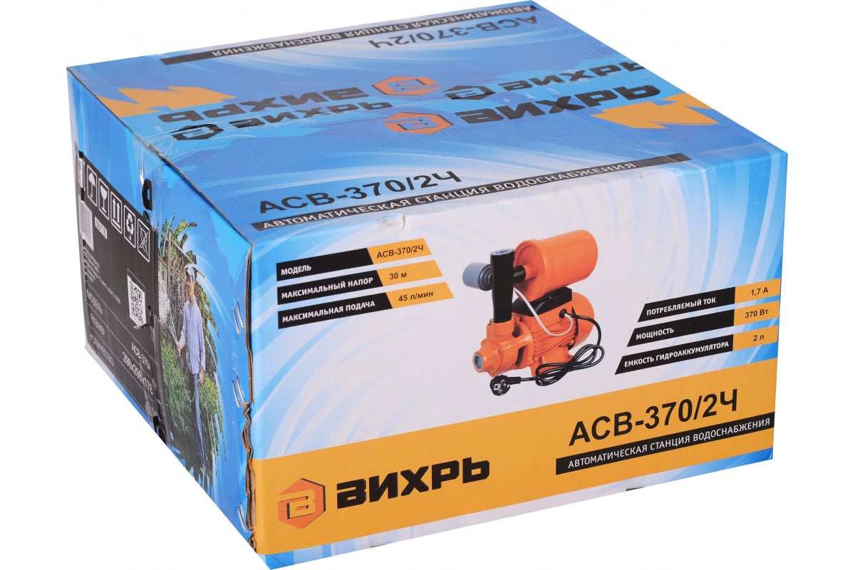 Насосная станция "Вихрь" поверхностный 45 л/мин 370 Вт АСВ-370/2Ч 68/1/8