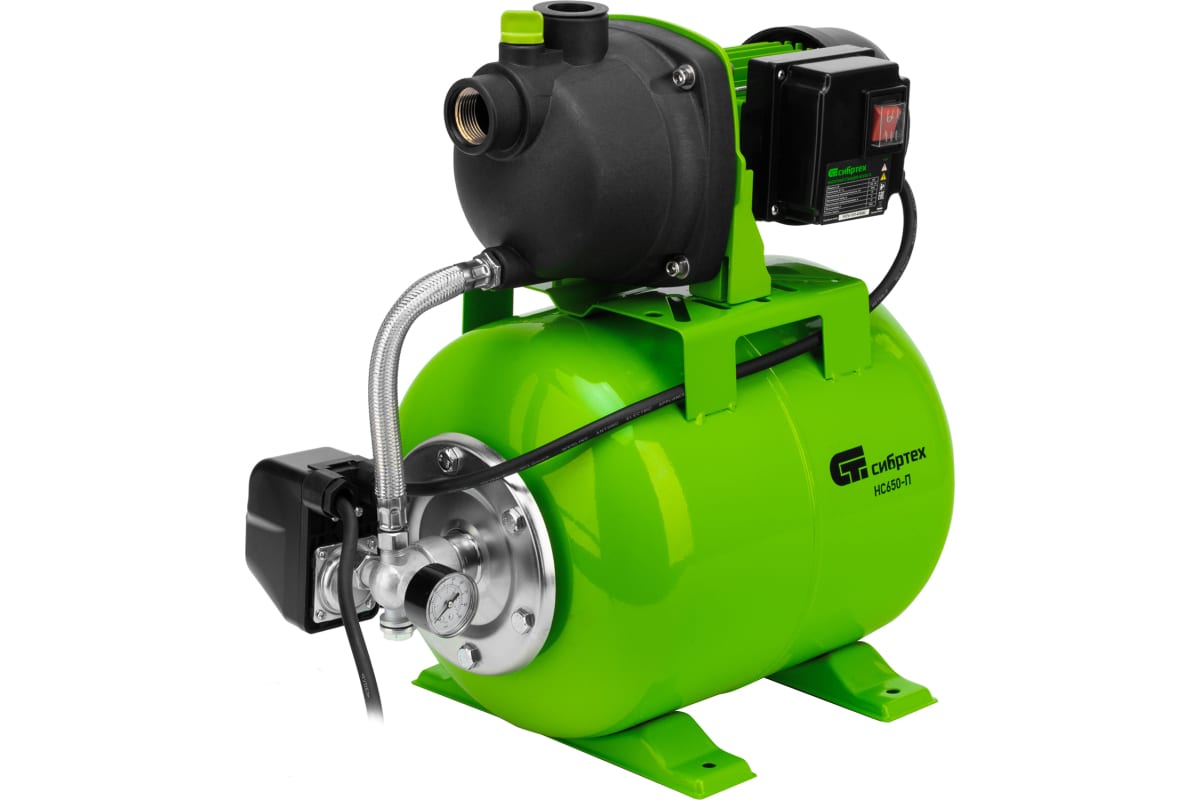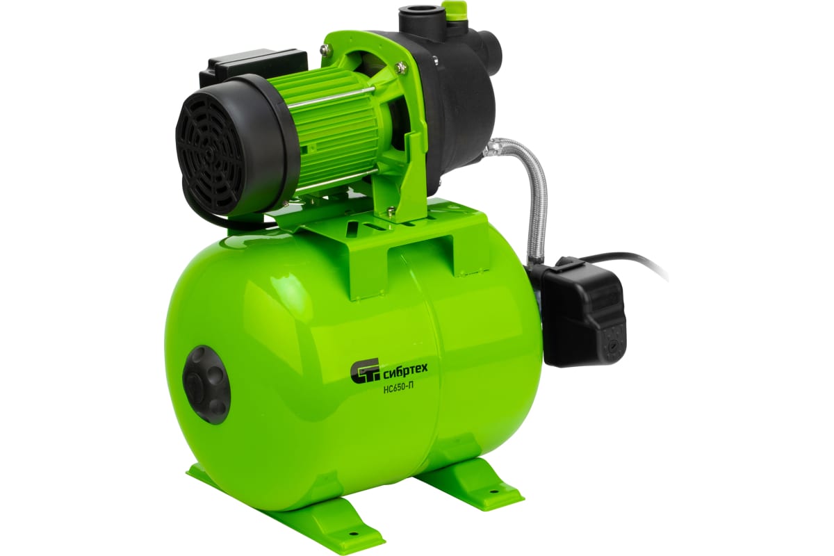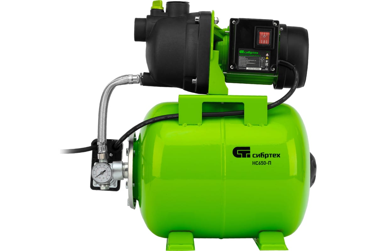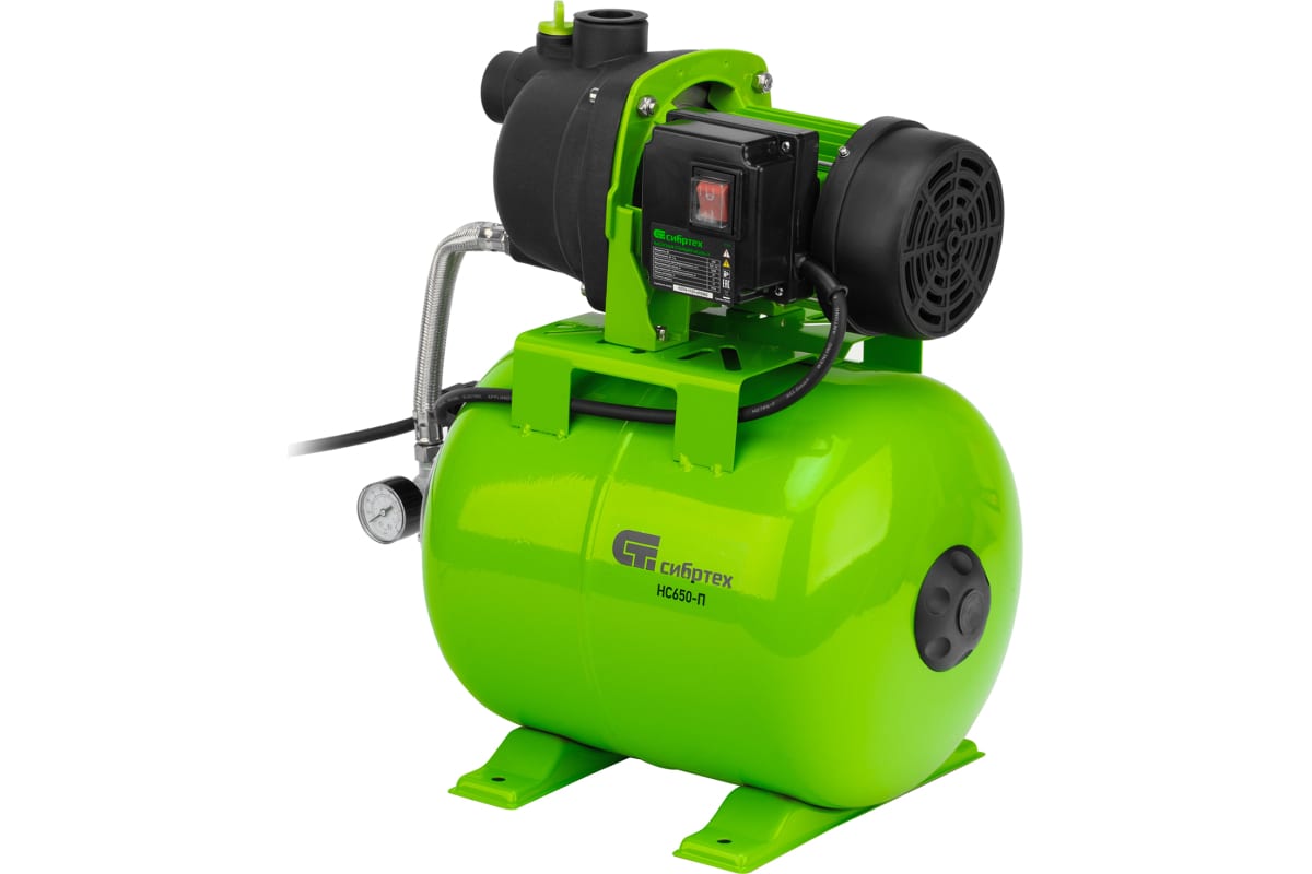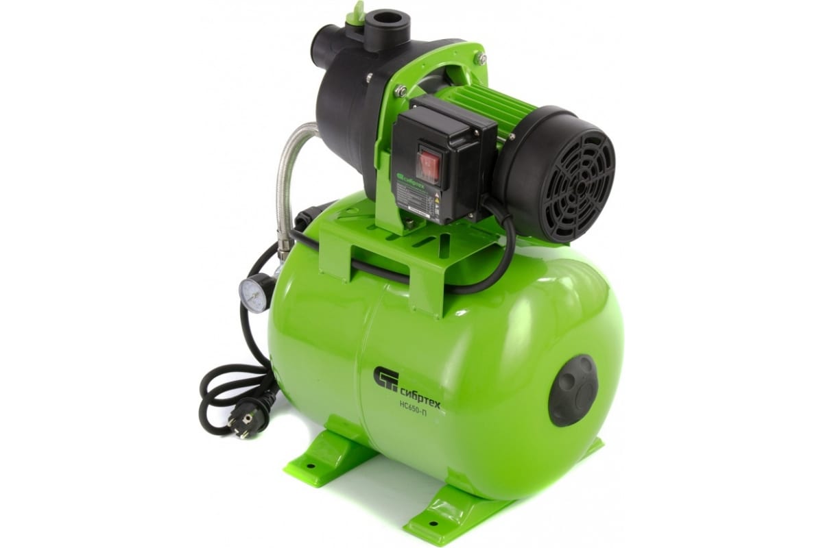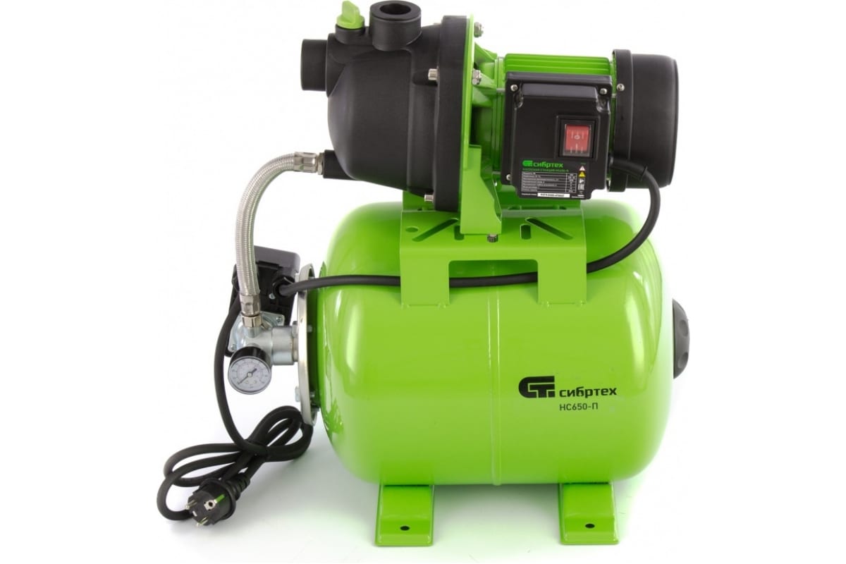 Насосная станция "Сибртех" 650 Вт, напор 37 м, 3200 л/ч, ресивер 19 л НС650-П арт. 97247