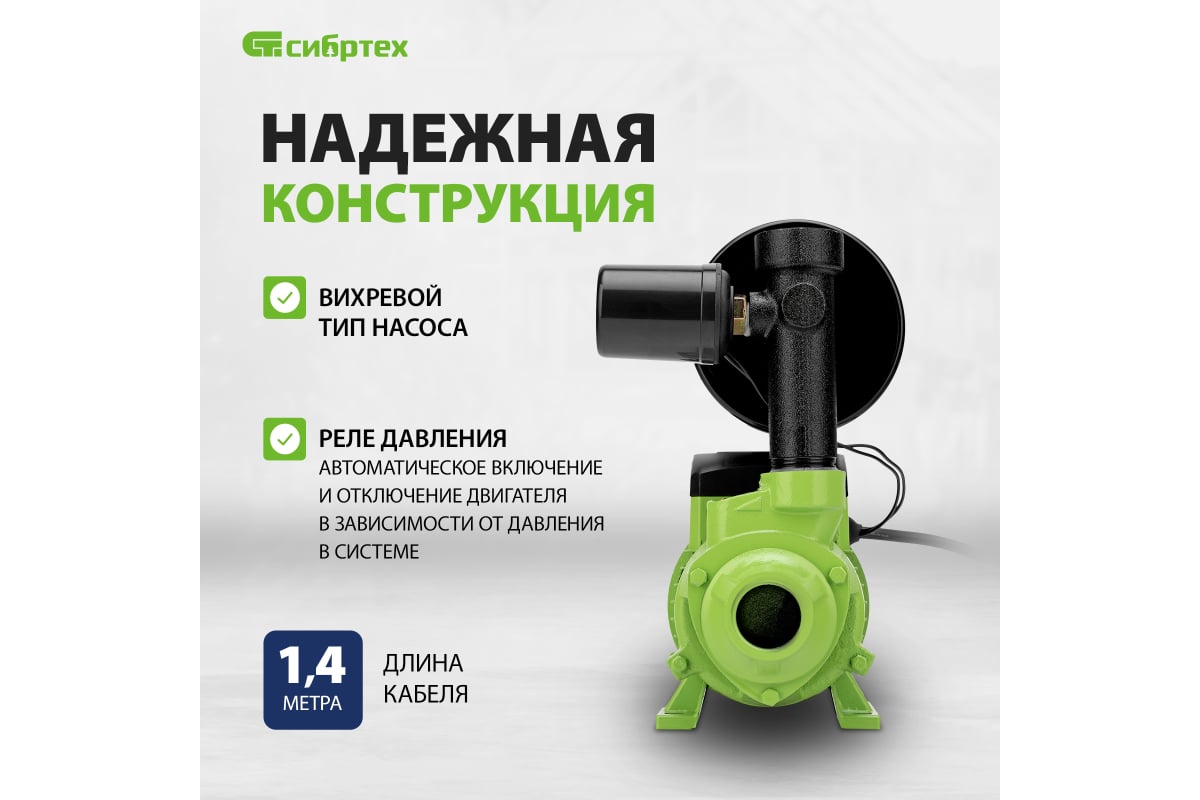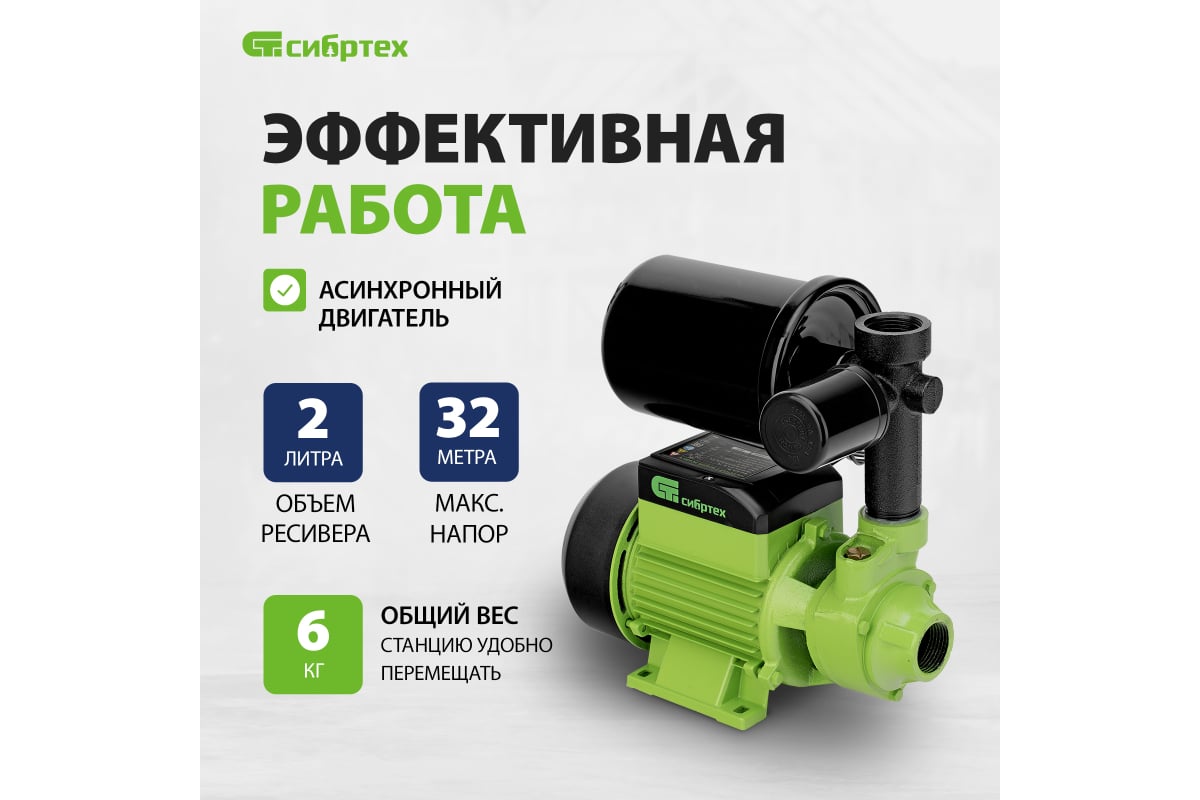 Насосная станция "Сибртех" 400 Вт, напор 32 м, 2100 л/ч, ресивер 2 л НС400-Ч арт. 97246