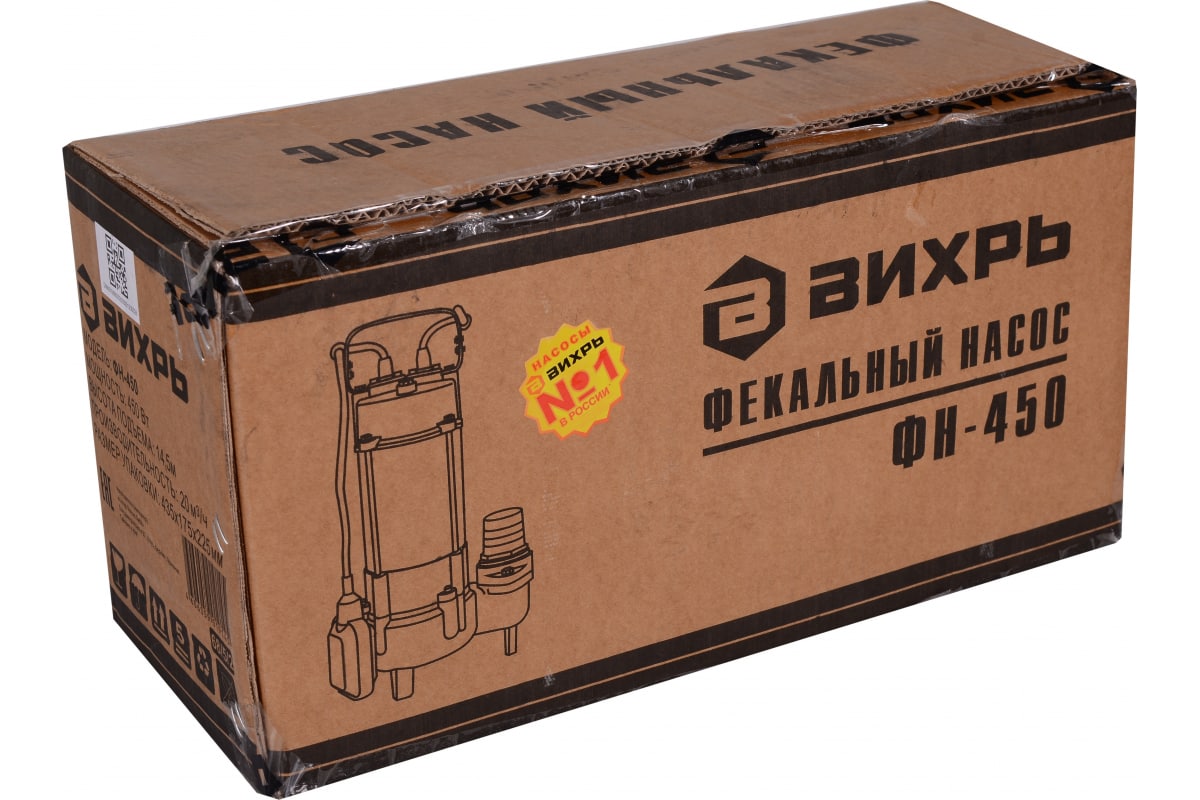Фекальный насос Вихрь ФН-450 предназначен для откачки загрязненных бытовых, сточных и смешанных вод, содержащих крупные включения, воды из рек, водоемов, также фекальные насосы используются для орошения, подачи воды с глубины. Агрегат состоит из насосной части, электродвигателя и поплавкового включателя. В состав электродвигателя входит статор, состоящий из двух обмоток с термопротектором. Устройство относится к погружным насосам, особенностью которых является то, что механизм находится ниже уровня выкачиваемой жидкости. Насос размещается в подвешенном состоянии или на специальной платформе, чтобы не затянуть ил или песок со дна. Специальный поплавковый механизм позволяет насосу включаться в момент, когда уровень жидкости достигает критичного уровня.