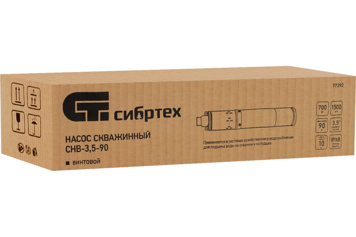 Насос скважинный "Сибртех" винтовой, диаметр 3,5, 700 Вт, 1500 л/ч, напор 90 м СНВ-3,5-90 арт. 97292