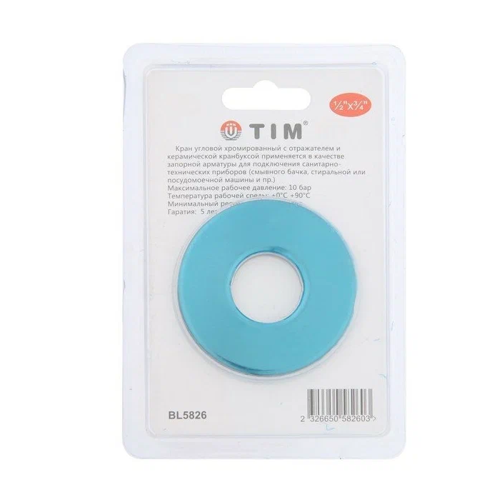 Кран шаровой угловой "TIM" для подключения бытовых приборов с отражателем 1/2х3/4 BL5826