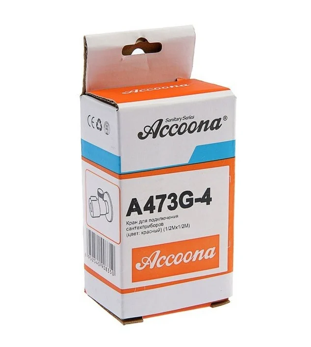 Кран шаровой угловой "ACCOONA" красный для подключения бытовых приборов 1/2х1/2 A473G-4