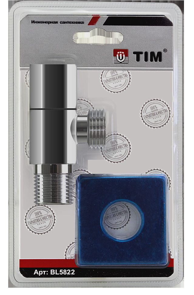 Кран шаровой угловой "TIM" для подключения бытовых приборов с отражателем 1/2х1/2 BL5822