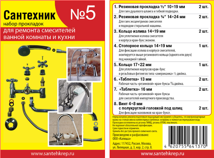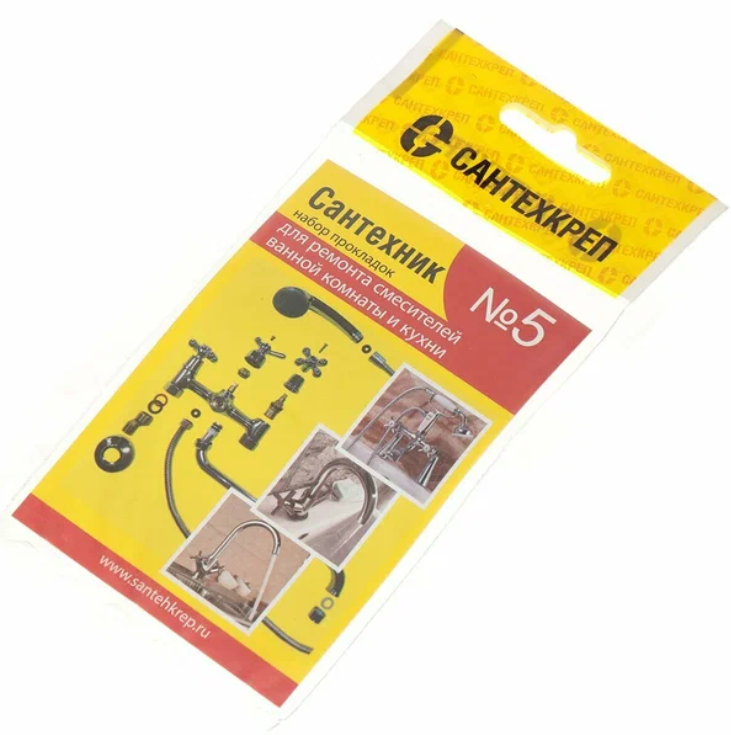 Набор ремонтный прокладок Сантехник №5 применяется для ремонта и переуплотнения смесителей ванной комнаты и кухни.