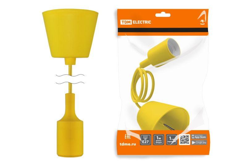 Патрон пластиковый со шнуром TDM E27 1 м желтый, SQ0335-0065 /428