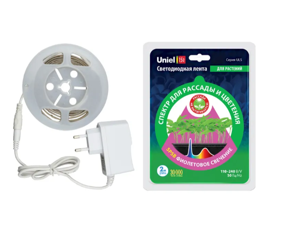 Лента светодиодная для рассады Uniel фито набор (лента + б/п) 2м, 7.5W/м /396