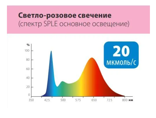 Светодиодная лента используется для ускорения роста рассады, развития и поддержания привлекательного внешнего вида комнатных растений в осенне-зимний период, растений растущих на окнах нижних этажей. Специализированный спектр SPLE обеспечивает правильный состав света, необходимый растению для фотосинтеза, используется для подсветки и основного освещения на протяжении всего жизненного цикла растения. Спектр SPLE имеет светло-розовое свечение и не требует экранирования зоны посадки.