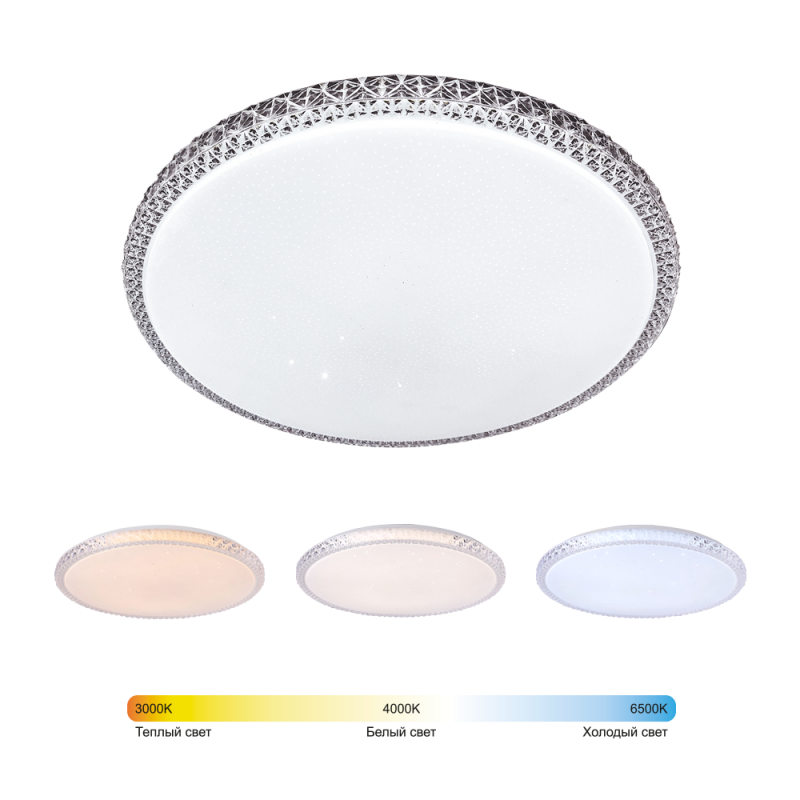 Мерцающий рассеиватель светильника MYSTERY, комбинированный с «хрустальной» огранкой его канта, создаёт загадочную атмосферу в интерьере. Пульт дистанционного управления поможет отрегулировать яркость и температуру освещения под ваше настроение, время суток или под конкретные задачи. Одним нажатием кнопки вы сможете сменить холодный контрастный свет (6500К) на уютный теплый (3000К), или снизить яркость до мягкого расслабляющего свечения в энергосберегающем режиме ночника (5% освещенности). Холодный дневной свет создает яркое контрастное освещение, удобное для работы с мелкими предметами и деталями. Теплый свет добавит интерьеру уюта и будет способствовать расслаблению в период вечернего отдыха. Используйте таймер отключения, и через 30 минут светильник выключится сам. Номинальный срок службы – не менее 30 000 часов, гарантия 2 года.