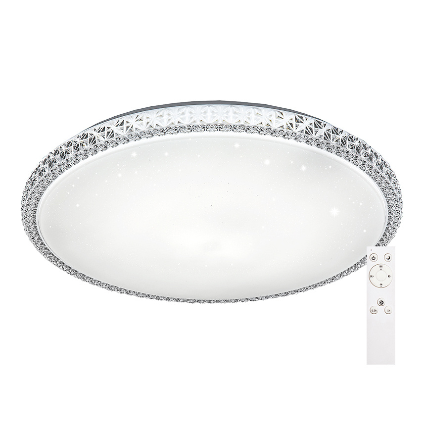 Мерцающий рассеиватель светильника MYSTERY, комбинированный с «хрустальной» огранкой его канта, создаёт загадочную атмосферу в интерьере. Пульт дистанционного управления поможет отрегулировать яркость и температуру освещения под ваше настроение, время суток или под конкретные задачи. Одним нажатием кнопки вы сможете сменить холодный контрастный свет (6500К) на уютный теплый (3000К), или снизить яркость до мягкого расслабляющего свечения в энергосберегающем режиме ночника (5% освещенности). Холодный дневной свет создает яркое контрастное освещение, удобное для работы с мелкими предметами и деталями. Теплый свет добавит интерьеру уюта и будет способствовать расслаблению в период вечернего отдыха. Используйте таймер отключения, и через 30 минут светильник выключится сам. Номинальный срок службы – не менее 30 000 часов, гарантия 2 года.