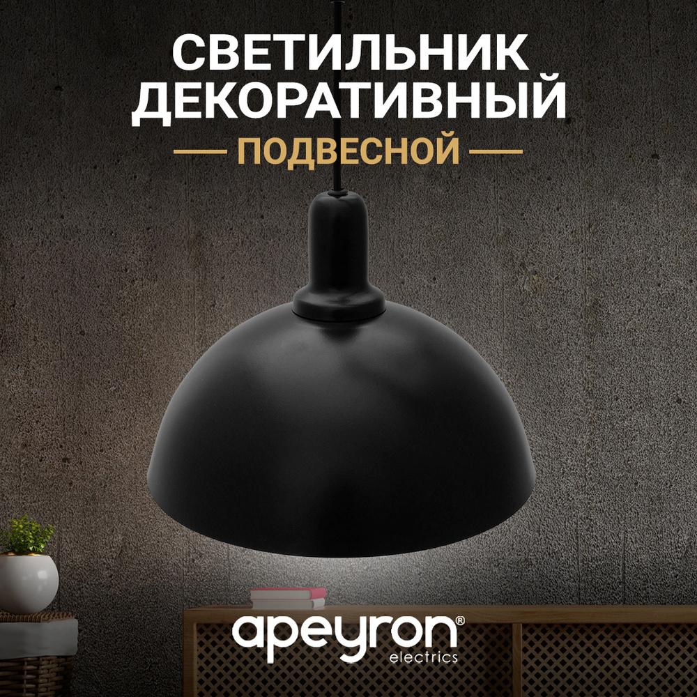 Светильник подвесной APEYRON черный металл Е27 шнур 600мм 250x110мм 12-103 /055