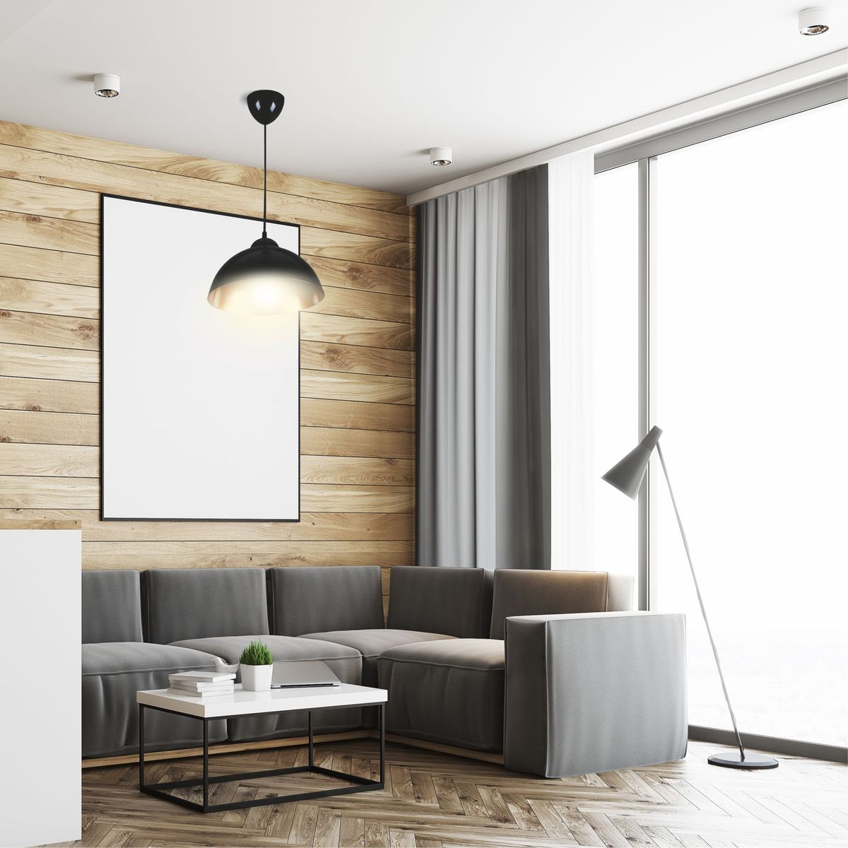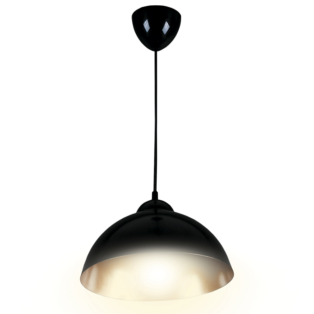 Подвесной декоративный светильник "Пэрсо" 14-47 используется как основной источник освещения для дома или любого пространства, где требуется подчеркнуть оригинальность интерьера. Минималистичный дизайн светильника позволяет использовать его практически в любом помещении. Идеально подойдет для кухни, гостиной, спальни, а также отлично будет смотреться в фотостудии, офисе, кафе и ресторане. Металлический, черный с золотым корпус имеет размеры O250х150 мм. Длина черного шнура 450 мм, регулируется при монтаже в зависимости от высоты потолков. Тип крепления – подвесной, на планку. В светильник можно установить лампу накаливания или люминесцентную лампу с патроном Е27 мощностью до 40 Вт (в комплект не входит). Для низкого энергопотребления мы рекомендуем использовать светодиодную лампочку. Светильник предназначен для работы в сети с номинальным напряжением 220В. Степень защиты от пыли и влаги IP20. Преимущества: - Минималистичный дизайн. - Длина шнура регулируется при монтаже