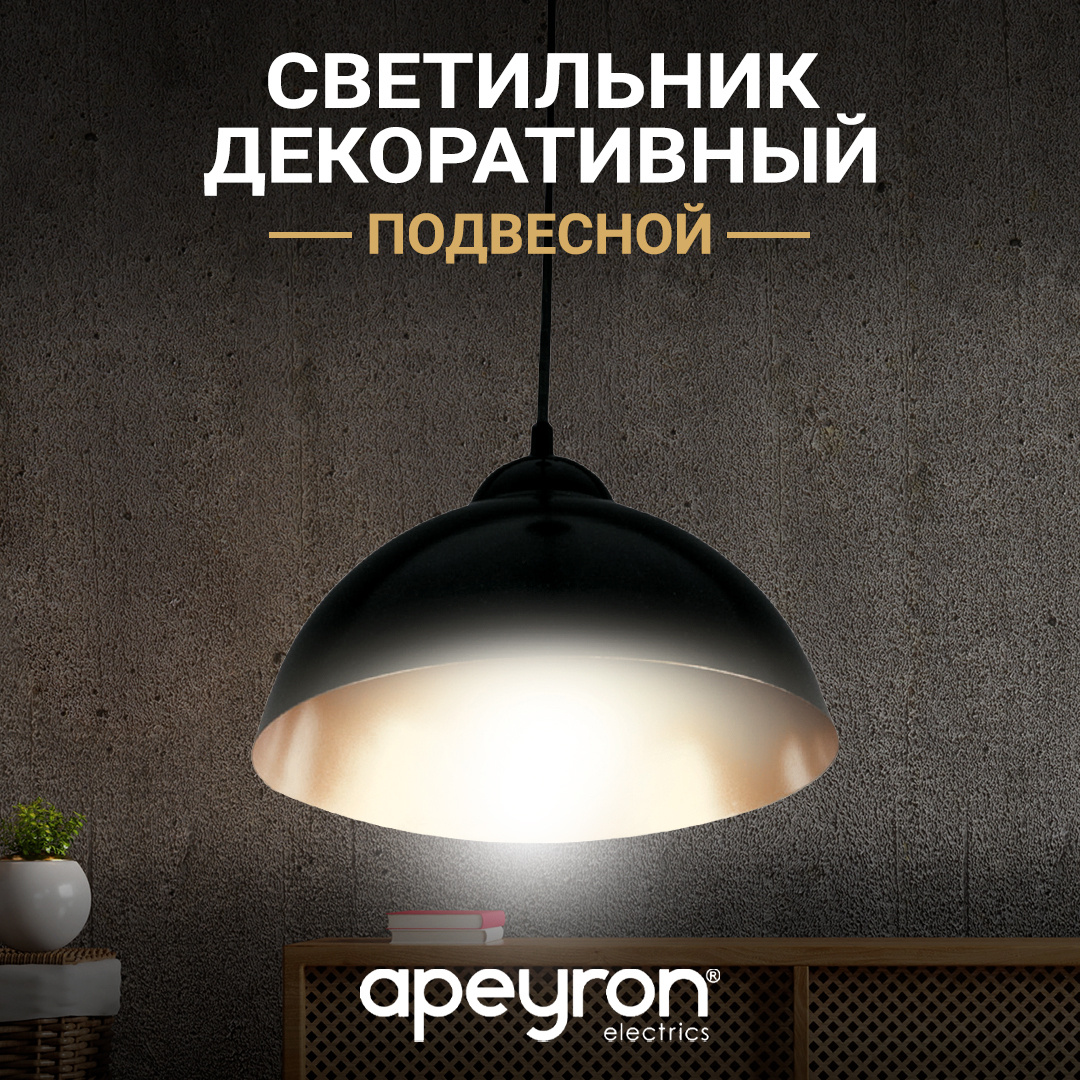 Светильник подвесной APEYRON Пэрсо черный с золотом металл Е27 шнур 450мм 250х150мм 14-47 /656