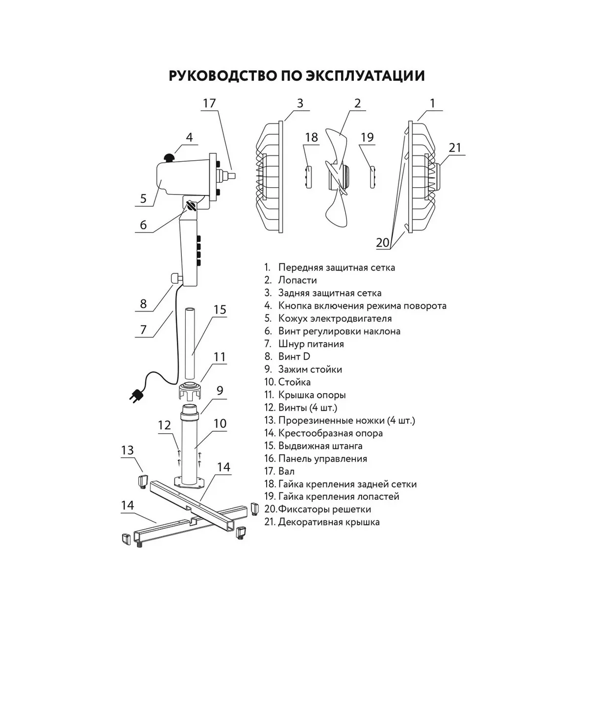 • Поворот 90°; • Регулировка угла наклона вентилятора;