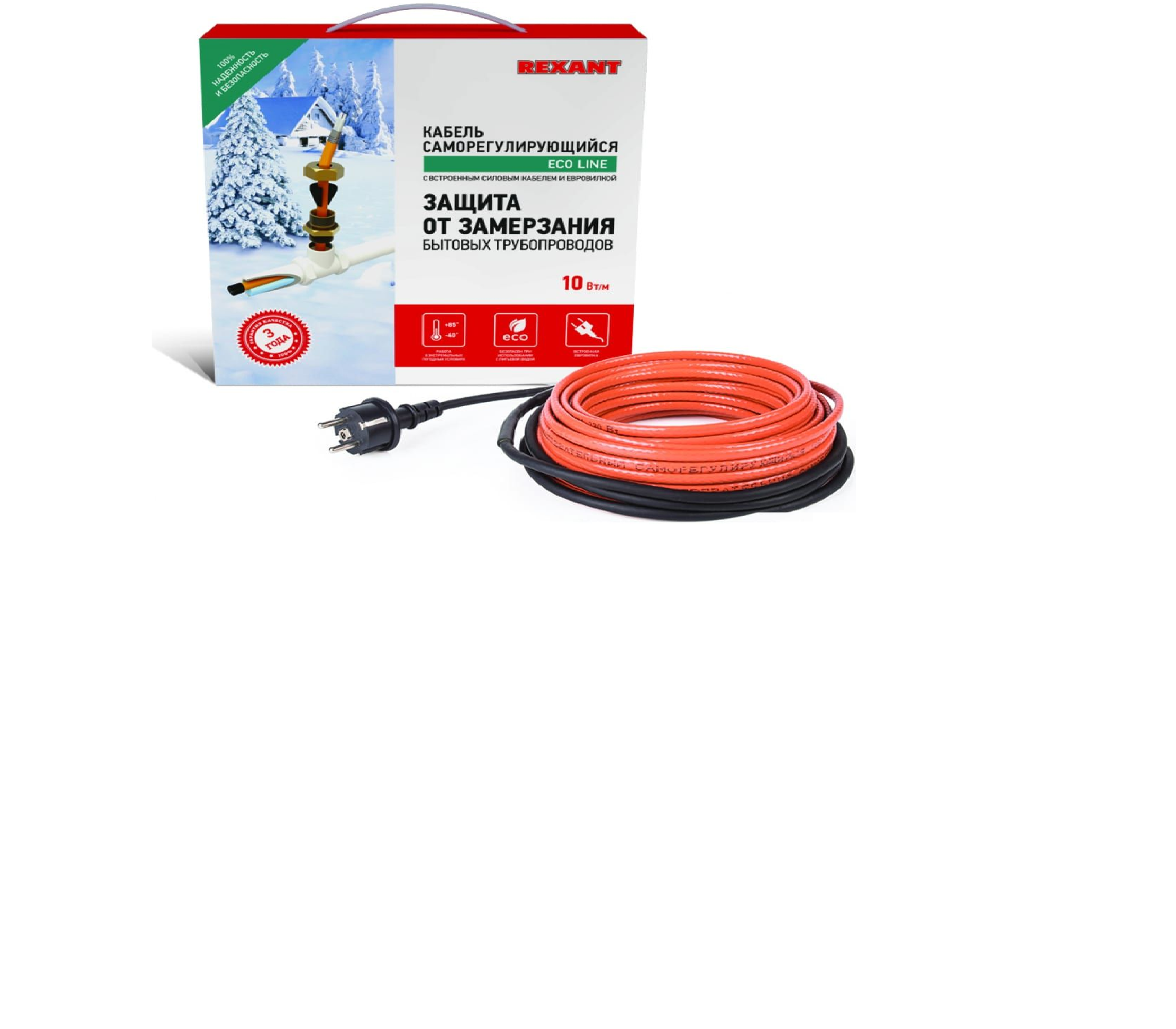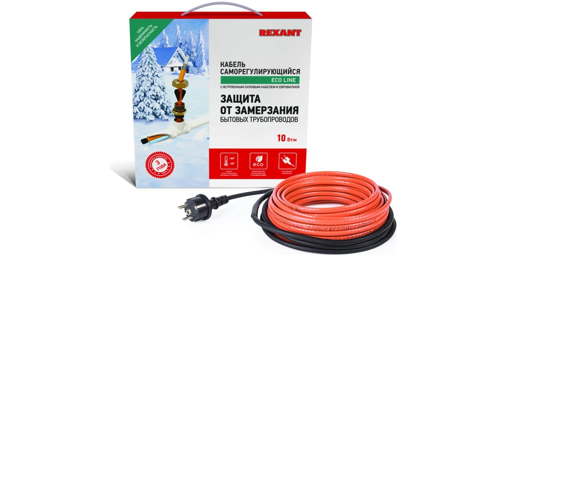 Кабель для обогрева труб саморегулируемый (внутрь трубы) длина 10м (комплект) REXANT