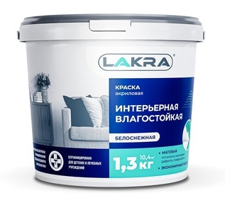 Краска в/д ЛАКРА интерьерная влагостойкая белоснежная 1,3кг