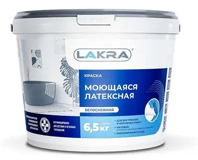 Краска в/д ЛАКРА латексная моющаяся белоснежная 6,5кг