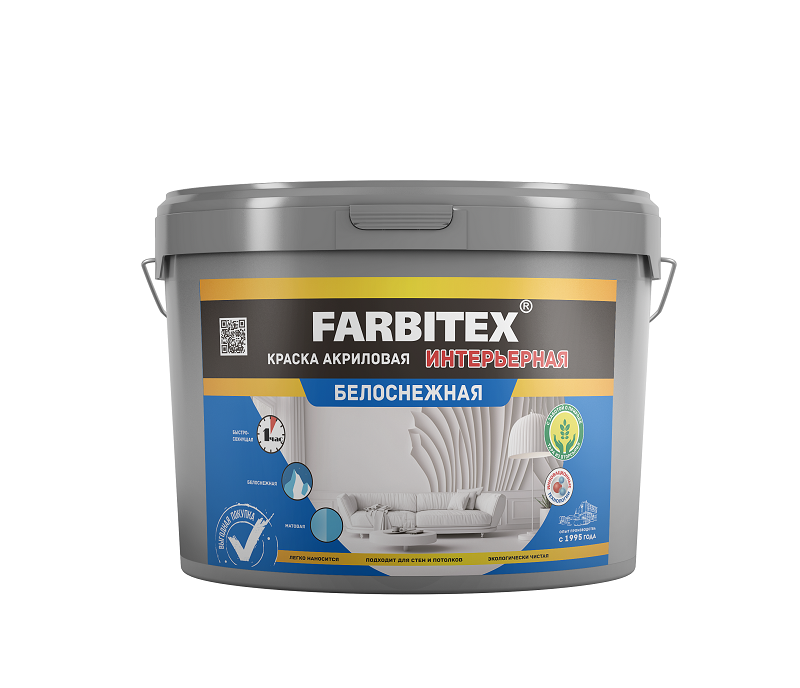 Краска в/д FARBITEX акриловая интерьерная белоснежная 6кг