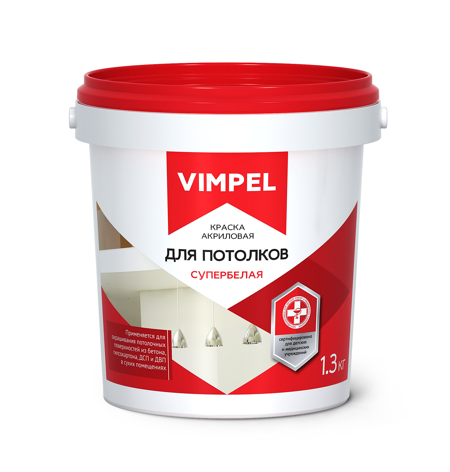 Краска в/д VIMPEL (вымпел) акриловая для потолков супербелая 1,3кг***