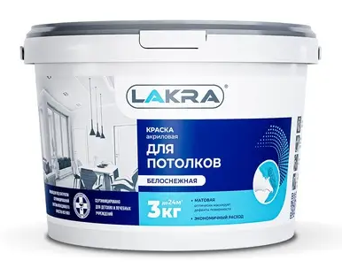 Краска в/д ЛАКРА для потолков белоснежная 3кг