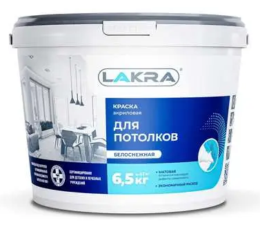 Краска в/д ЛАКРА для потолков белоснежная 6,5кг