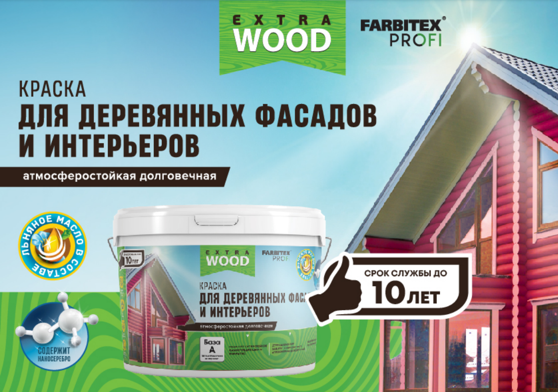 Краска для деревянных фасадов и интерьеров FARBITEX PROFI WOOD EXTRA Ягель 0,9л