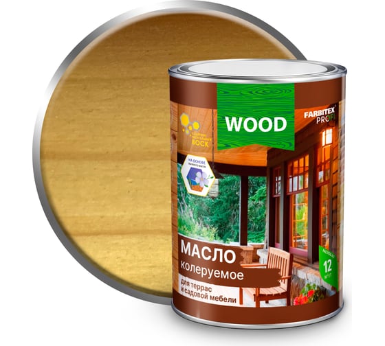 Масло колеруемое FARBITEX PROFI WOOD для террас и садовой мебели сосна 0,9л
