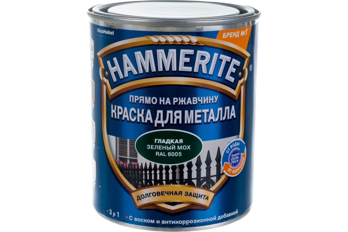 Краска по металлу Hammerite 3в1 Гладкая RAL6005 Зеленый мох 0,75л