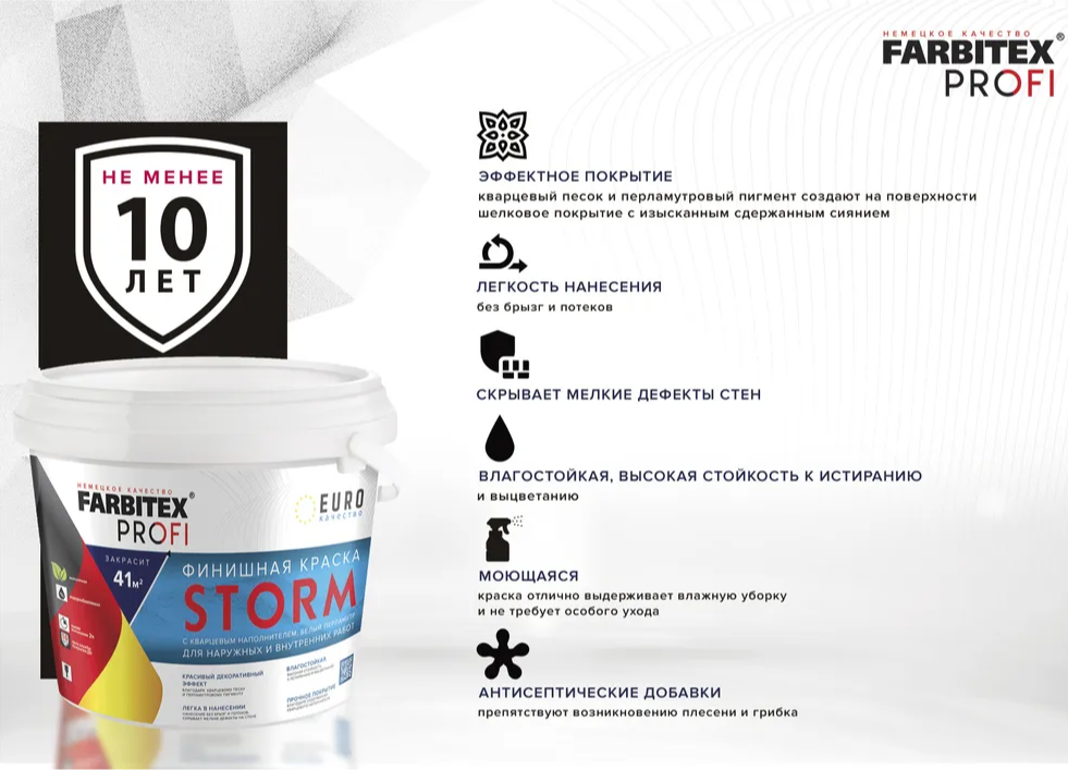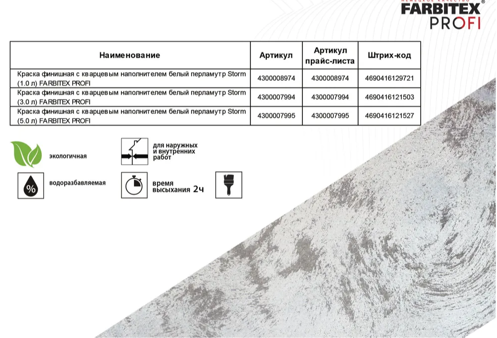 Краска в/д FARBITEX PROFI финишная Storm белый перламутр 5л