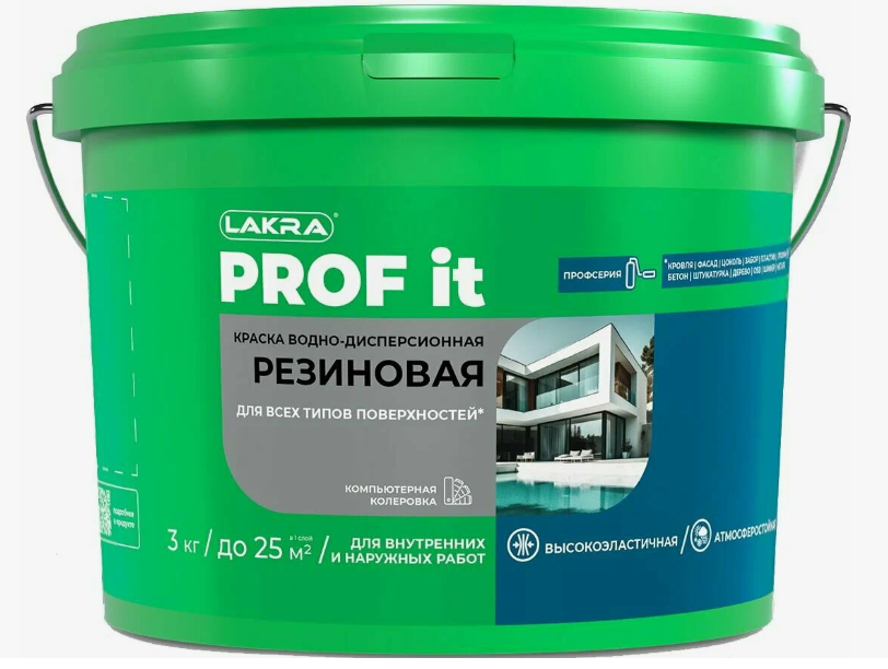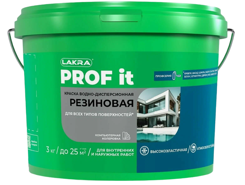 Краска в/д ЛАКРА PROF IT резиновая для всех типов поверхностей коричневый RAL 8017 3кг