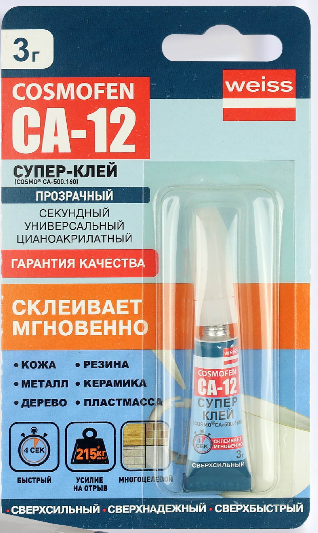 Благодаря широкому спектру схватываемости COSMO СА-12 подходит для склеивания разнообразных материалов для многих целей применения в малосерийном и промышленном секторе, преимущественно для склеивания различных резиновых и пластмассовых поверхностей (в оконном производстве, например, он превосходно подходит для склеивания резиноуплотнителей.)