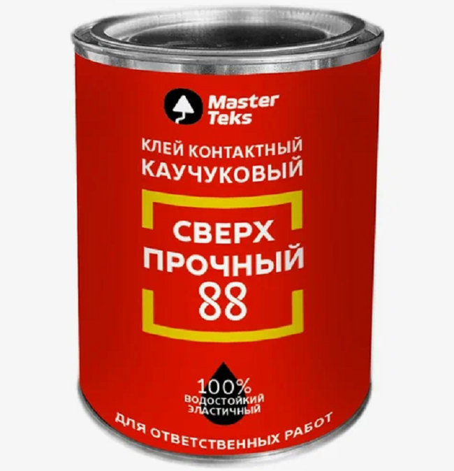 Контактный клей Master Teks Сверхпрочный 88 на каучуковой основе применяется для склеивания в любых сочетаниях дерева, металла, кожи, резины, пластика, стекла, керамики, ткани, бумаги, войлока и бетона.