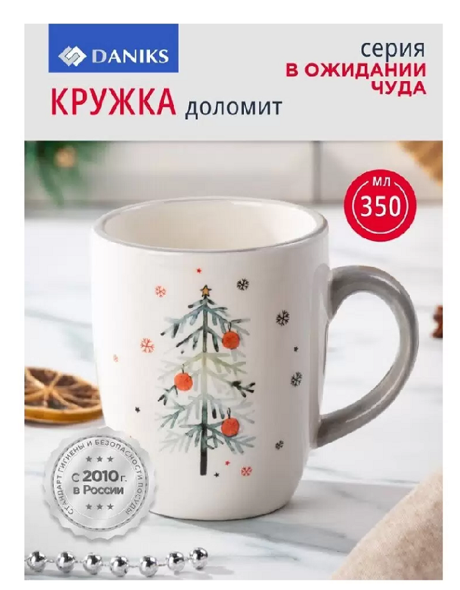 Кружка Daniks "В ожидании чуда" из доломита — это выбор для тех, кто ищет не просто посуду, а атмосферу уюта. Благодаря плотному доломиту кружка долго сохраняет температуру напитка, а округлый объём 350 мл оптимален для чая, кофе или какао. Дизайн с новогодними мотивами (ёлка, снежинки) делает её отличным вариантом для подарка на Новый год или уютных зимних вечеров.