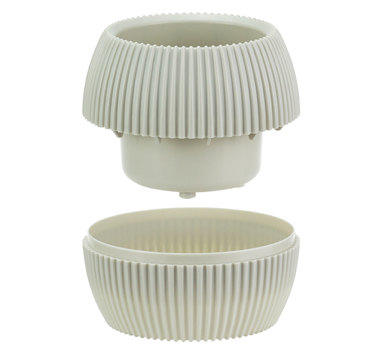 Кашпо состоит из двух частей: корпуса и поддона. Который крепиться на защёлки и используется для сбора лишней воды.