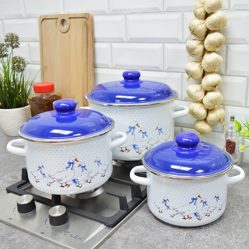 Набор кастрюль эмал. Гуси №19 2л, 3л, 5,5л 6KB191M 108690