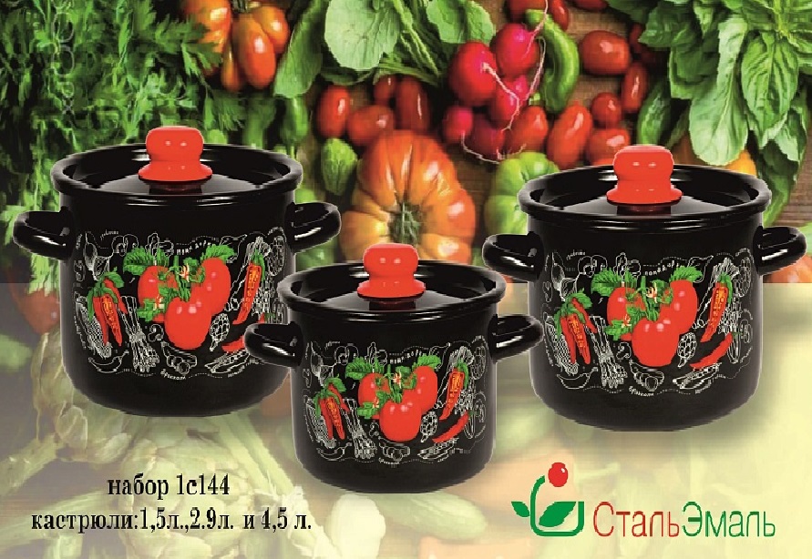 Набор их трёх цилиндрических кастрюль с высоким корпусом изготовлен по ГОСТ 24788 из высококачественного стального проката, покрытого двумя слоями жаропрочной эмали. Эмалевое покрытие на основе силикатных фритт, являясь стекольной массой, не вступает во взаимодействие с продуктами, не искажает их вкусовые качества, не окисляется, при нагревании не выделяет опасные для здоровья человека соединения. Многослойное эмалевое покрытие практично, долговечно и устойчиво к появлению царапин и сколов. Прочный металлический корпус не деформируется в процессе эксплуатации и гарантирует эффективную тепловую обработку пищи.Эмалированная посуда подходит для кухонных плит любого типа, в том числе индукционных, а так же для использования в посудомоечной машине. Эмалевое покрытие наружной поверхности посуды является стойким к прямому контакту с пламенем газовой горелки бытовых газовых плит.