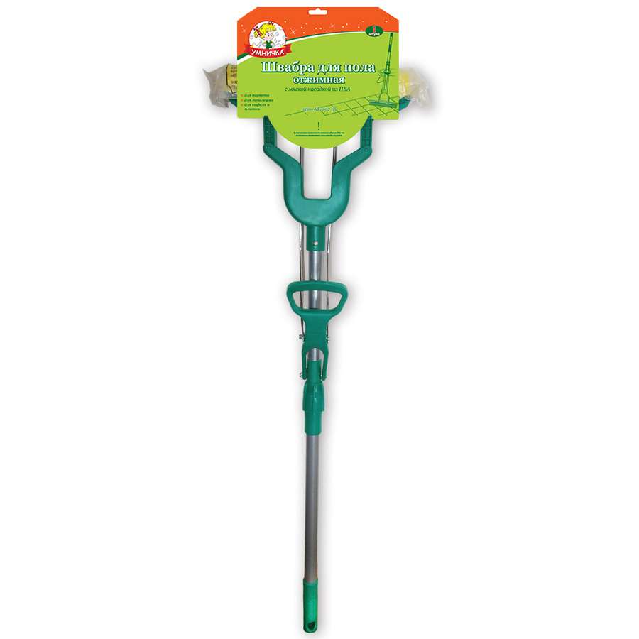 Предназначена для ухода за любыми напольными покрытиями. При погружении губки в воду весь мусор остаётся в воде. Телескопический черенок позволяет менять длину швабры до 115 см.