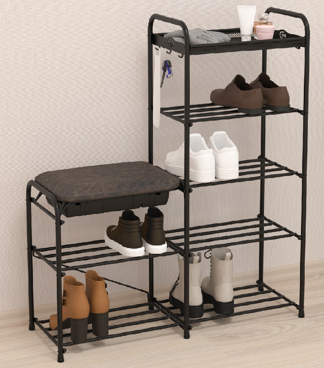 Подставка для обуви металл.Альфа 35 черная с сиденьем и ящиком ПДОА35СЯ Ч